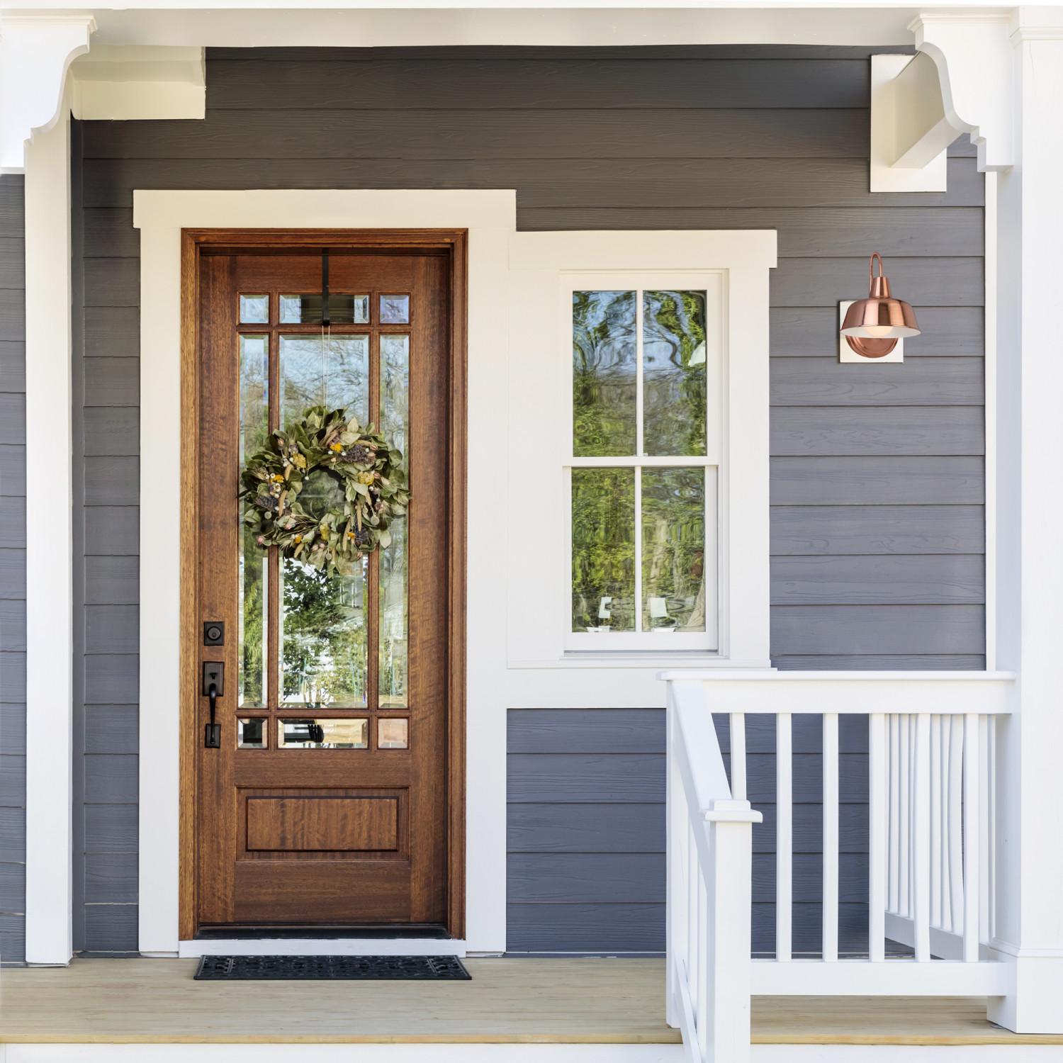Design House 588434 メイソン ファームハウス ウォール ライトは塗装された銅製で、取り付けが簡単で、デッキ、ドライブウェイ、フロント ポーチ、玄関、ベッドルーム、キッチン、オフィスなどを照らします。スチール製のこのモダンな壁掛け照明器具は、アーチ型のアームと光を下に向けるベル型の金属シェードを備えた魅力的な塗装銅仕上げが特徴です。湿気の多い場所に適しているので、屋外灯や室内灯として空間を明るく照らしてくれます。単独で使用するか、ドアやバスルームの鏡の両側にペアとしてスタイリッシュに使用できます。このクラシックなバーン ライトは、時代を超越したスタイルを提供し、ご自宅のあらゆる空間を引き立てます。あらゆる好みと予算に対応する高品質の照明、ハードウェア、配管、キッチン、バス製品の信頼できる供給元である Design House によって設計および製造されています。
